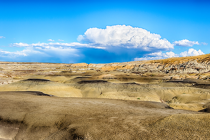 Rain clouds seemed to hover at the east end of the badlands all afternoon, but they never crept into our area. Since we were over two miles from the Explorer and we had 18 miles of dirt road to get back to civilization, we appreciated the clouds holding off.