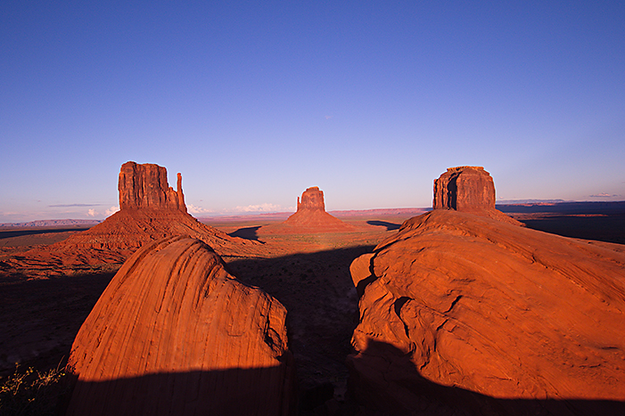 We checked in at Goulding's Campground just outside Monument Valley, got set up, and ate lunch. When we entered Monument Valley, there were still a few good clouds in the north. Our plan was to shoot the north-facing areas first. The catch was that Scenic Drive is a one-way road around the loop, and it goes south first.