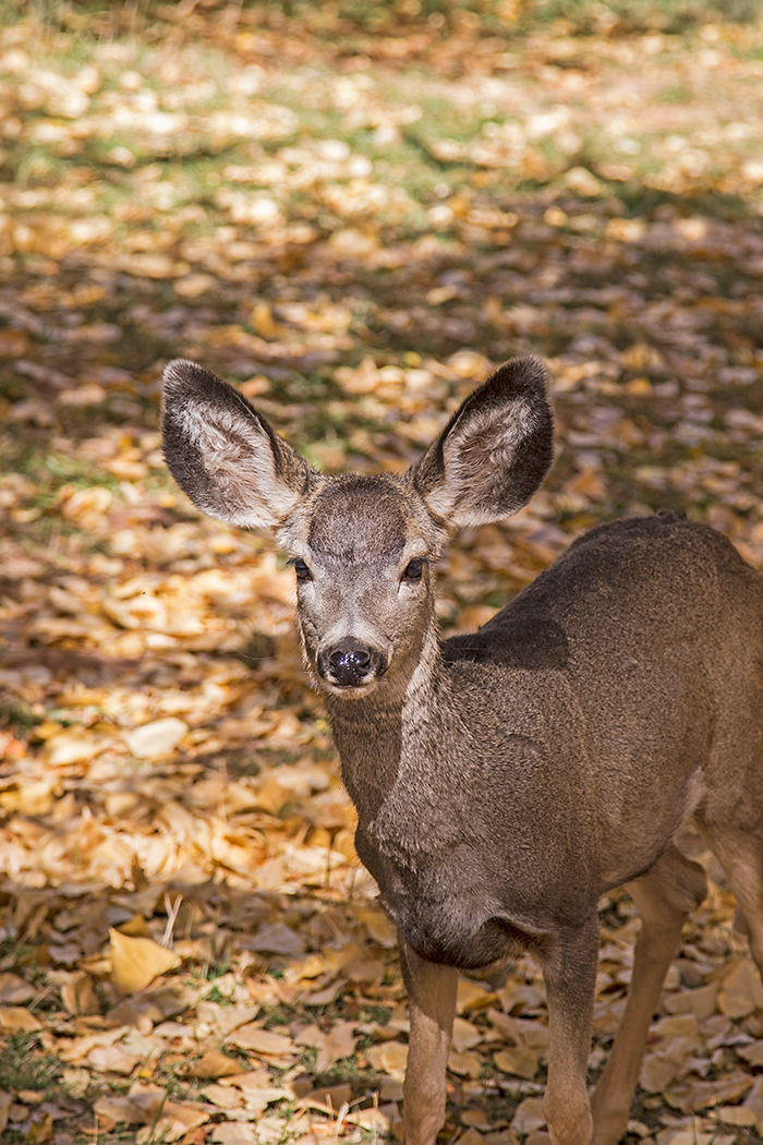 for interesting photos. We walked over to the orchard to photograph the deer herd among the trees when the sunlight finally reached the canyon floor.