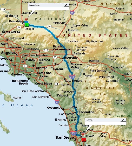 Today was an easy drive south. Thanks to Ian's suggestion, we skipped Los Angeles completely by taking a "back way" to Interstate 15 from Palmdale. We dropped down into Riverside and cruised home. We didn't get our favorite stop at Panda Inn for Chinese in Ontario, but you can't have everything.