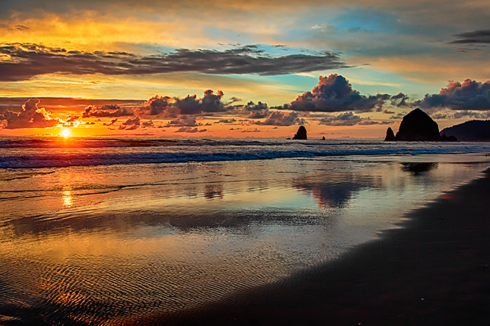After Hug Point, we continued north to Tolovana Beach State Park to shoot sunset. Tolovana is a very wide gently-sloped beach that provides great views and reflections of Haystack Rock. It's a wonderful place to walk even if you have no interest in photography.