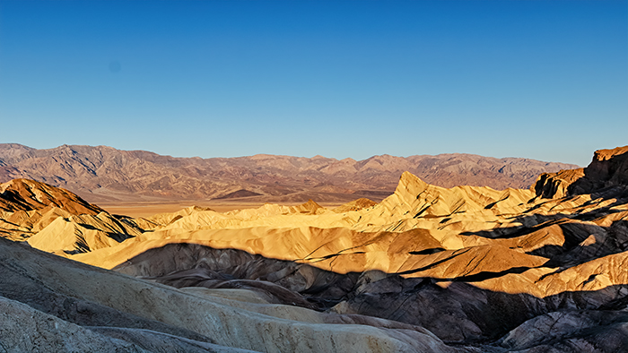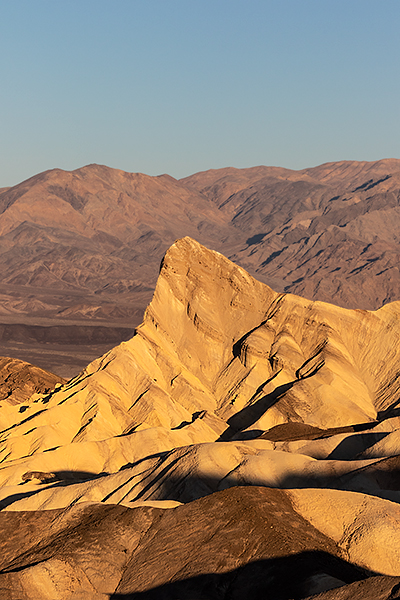 Zabriskie Point was very popular this morning. Carol and I shot from a ridge off to the side of the point to improve the angle to Manly Beacon and keep the other photographers out of our shots. There were no clouds, so it was a relatively flat sunrise, but it was a good morning to be shooting. There were lots of families around and everyone seemed to be enjoying the morning.